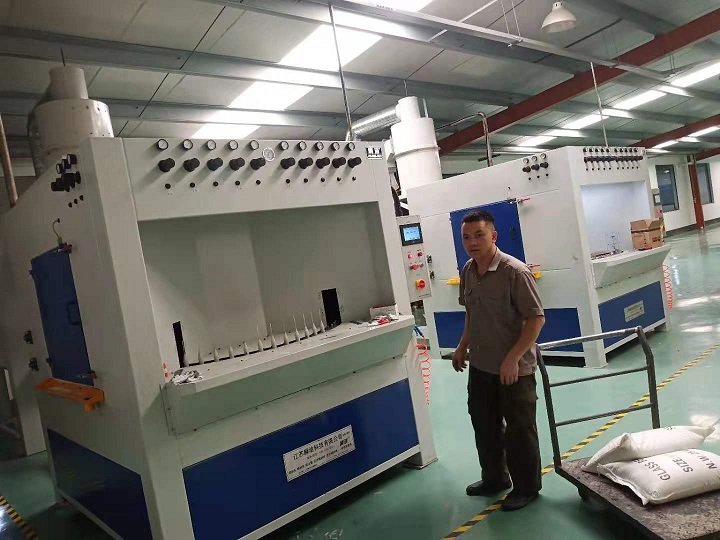 7、  該設備出料口設計吹凈槍3把,保證每個產品噴砂磨料無殘留,潔凈美觀。