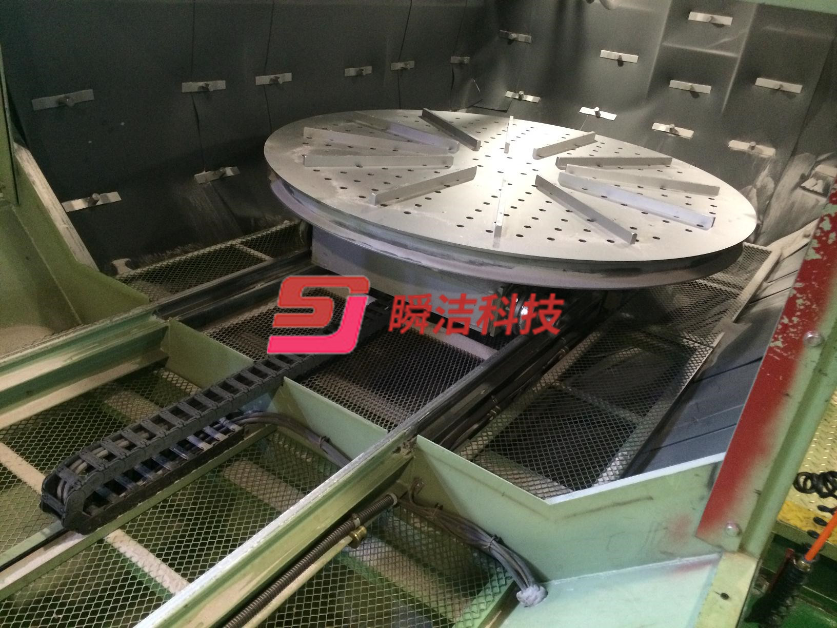 3、  本設備大轉盤行程為全自動,轉盤旋轉變頻可調,轉盤工作臺可以根據產品多樣化而設計,根據產品規格更換簡單,滿足客戶所有產品噴丸需求,。