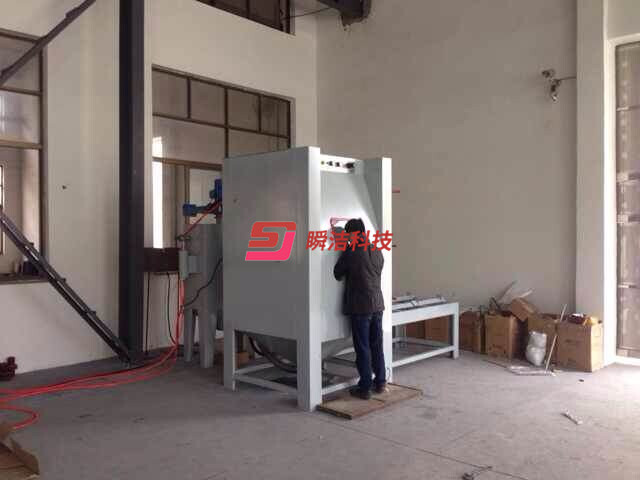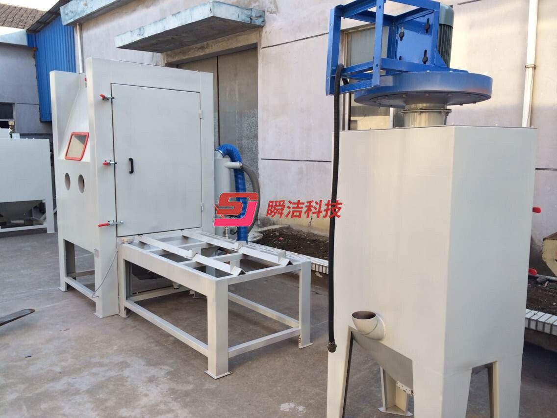 、配備活動臺車,和轉盤,操作時將工件放在轉盤上,然后推入機內即可噴砂作業,操作簡單省力。