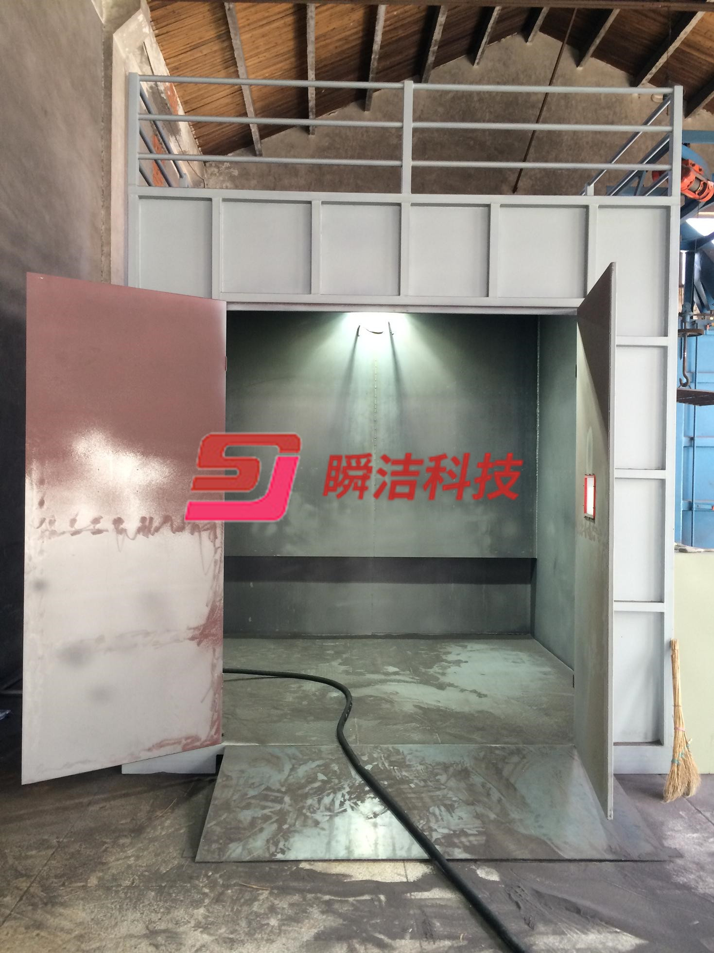 噴砂房又叫噴丸房、打砂房,適應于一些大型工件表面清理、除銹,增加工件與涂層之間的附著力等效果  噴砂房根據磨料的回收方式噴丸房分為:機械回收式噴丸房和人工回收式噴丸房. 其中人工回收噴砂房由于經濟實用,制作簡單、方便,用材簡易,大大的減少了噴砂房的造價成本,也被很多客戶特別是中小企業所接受。
