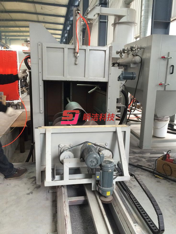 2..鋼管內外壁噴砂清理機適用于大、中、小型鋼管、鋼瓶的表面處理和強化、工件自動旋轉、自動行走  工件的運轉速度可根據工件的要求進行及時調整, 可設計成單管、雙管、3管、4管、變異后可清理大型管件、油罐,化工儲運罐鐵路車輛等.